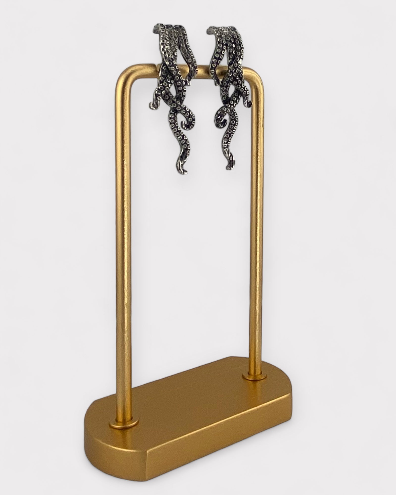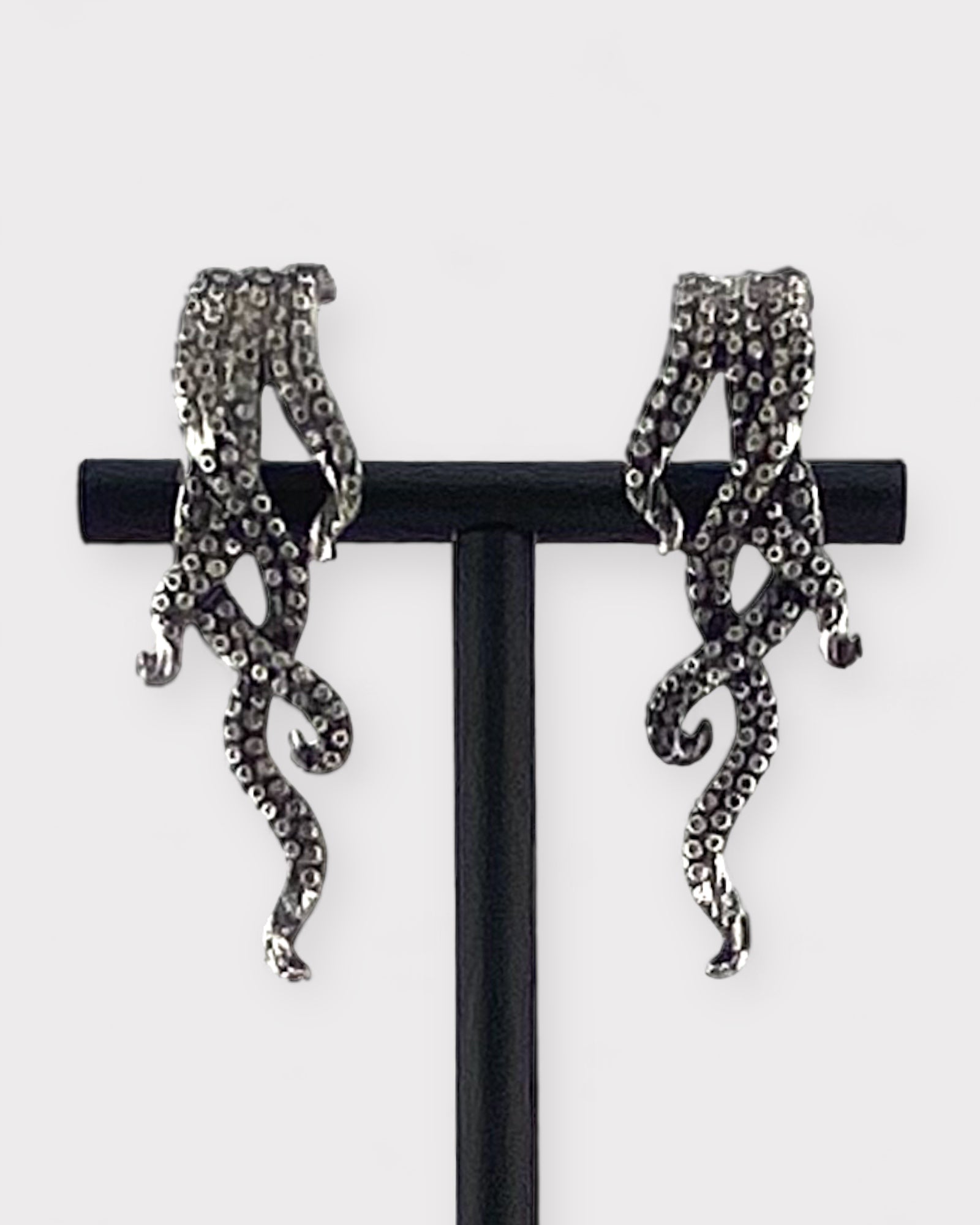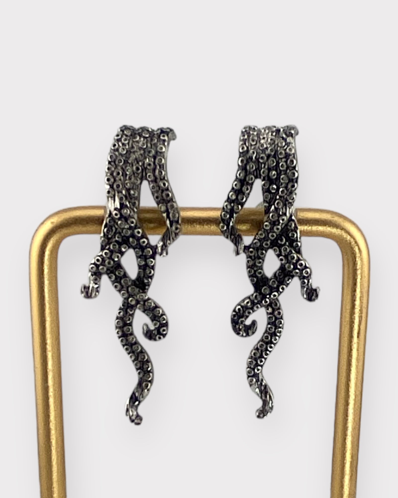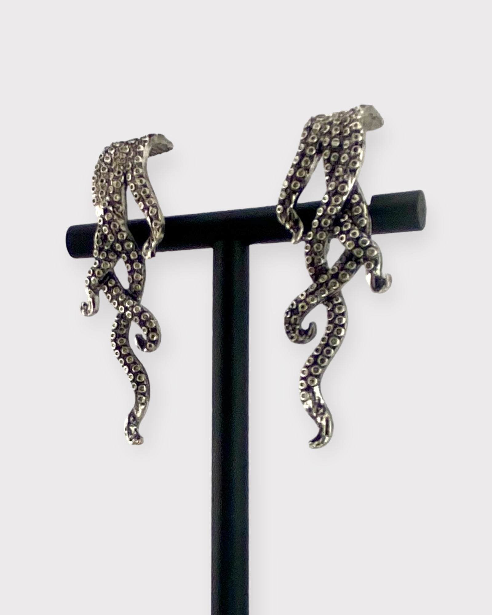 These antique silver-tone earrings perch for a tentacticle illusion.