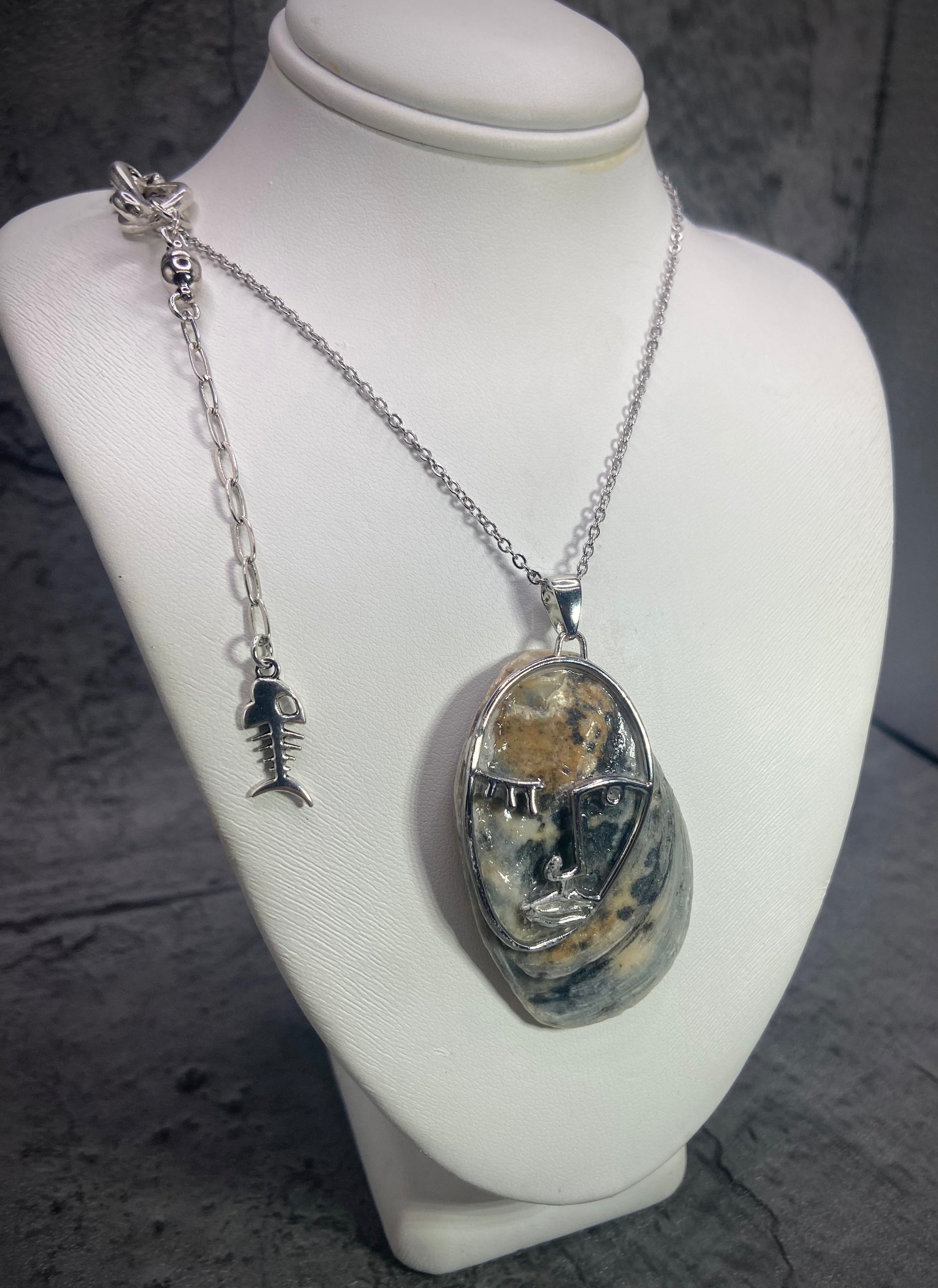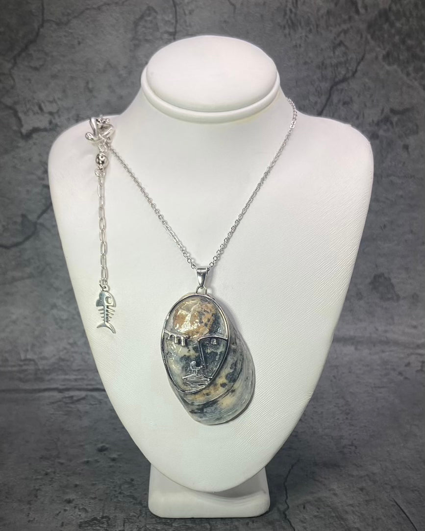 This necklace features a colorful Rockaway Beach seashell adorned with a fabulous face.
