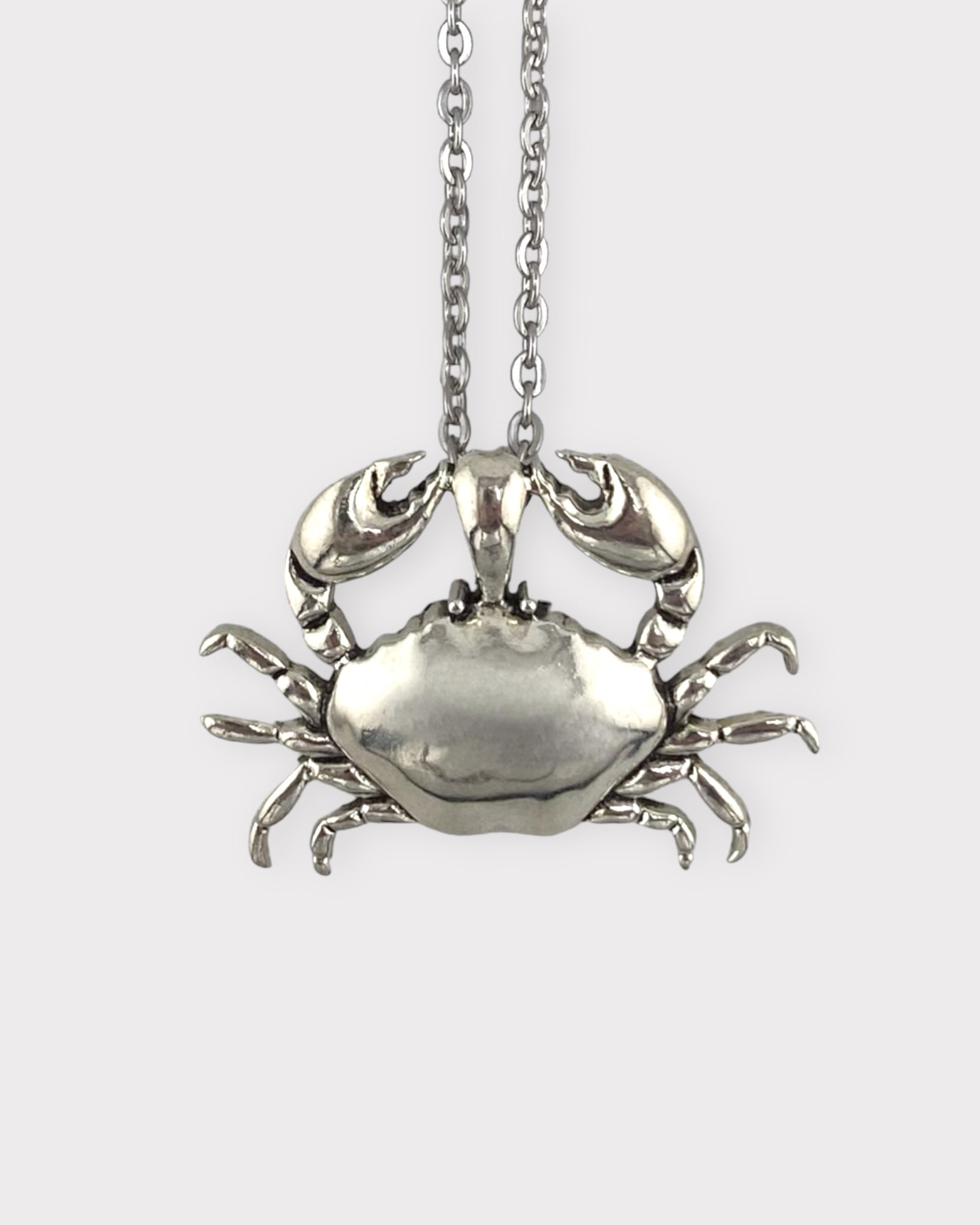 The GHOST CRAB necklace features a silver-tone steel crab pendant on a stainless steel chain.