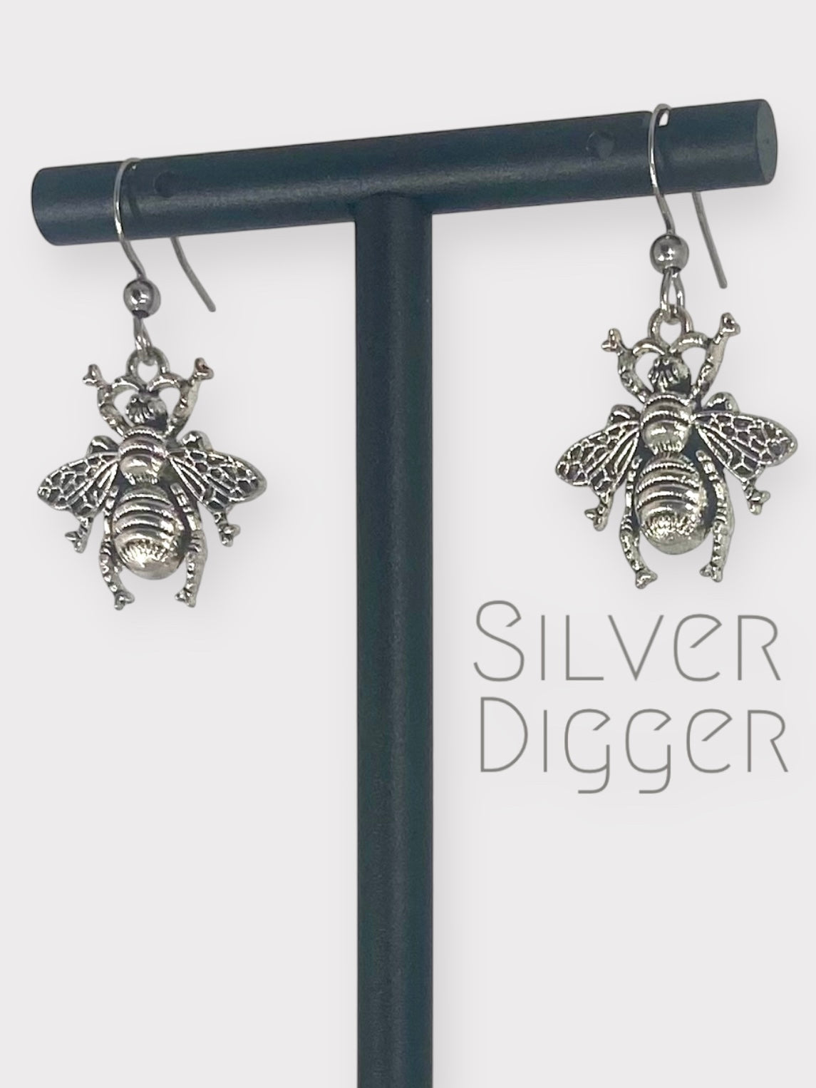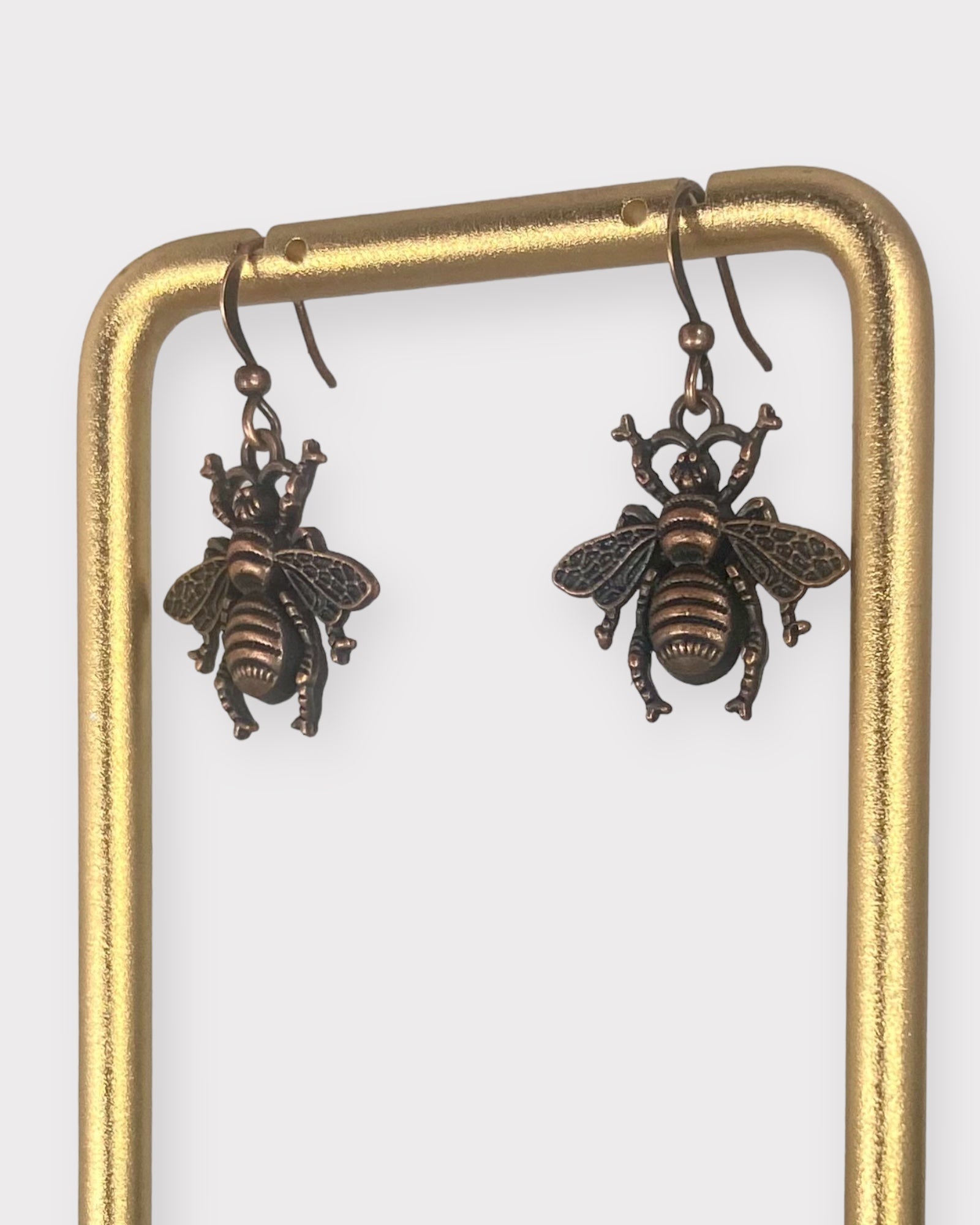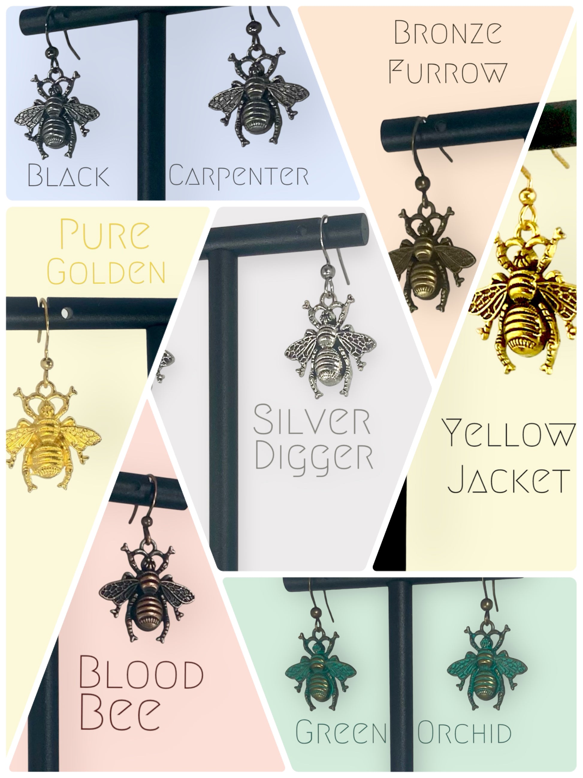 The PERDITA MINIMA line celebrate the smallest of bees. These simple earrings feature 1/2" bee charms on small, elegant hooks. Available in SILVER DIGGER, PURE GOLDEN, BLACK CARPENTER, ROSE-MALLOW, YELLOW JACKET, BLOOD BEE, and GREEN ORCHID.