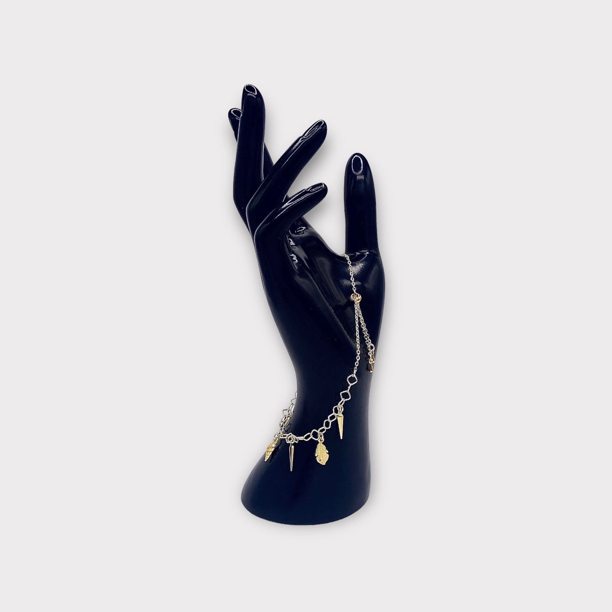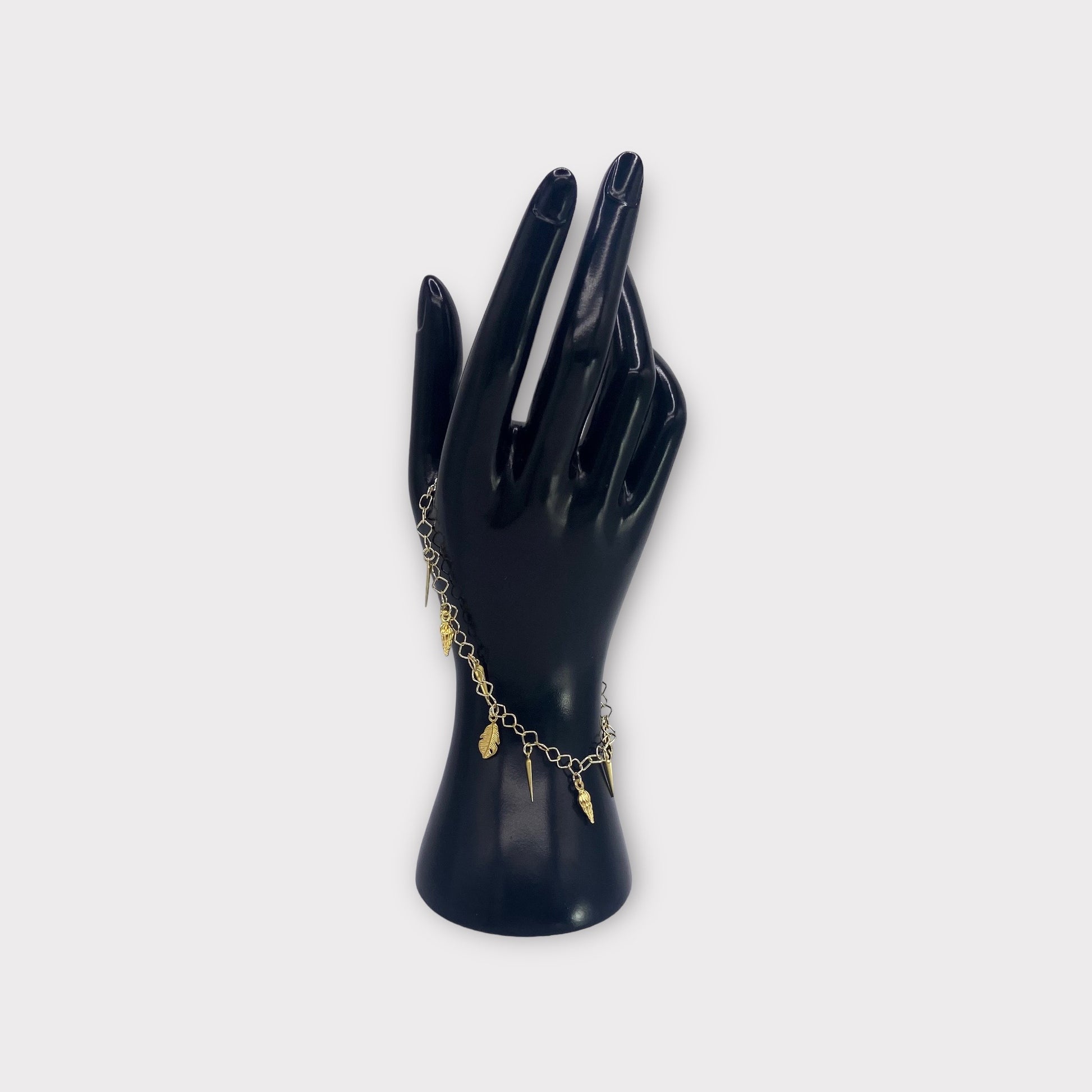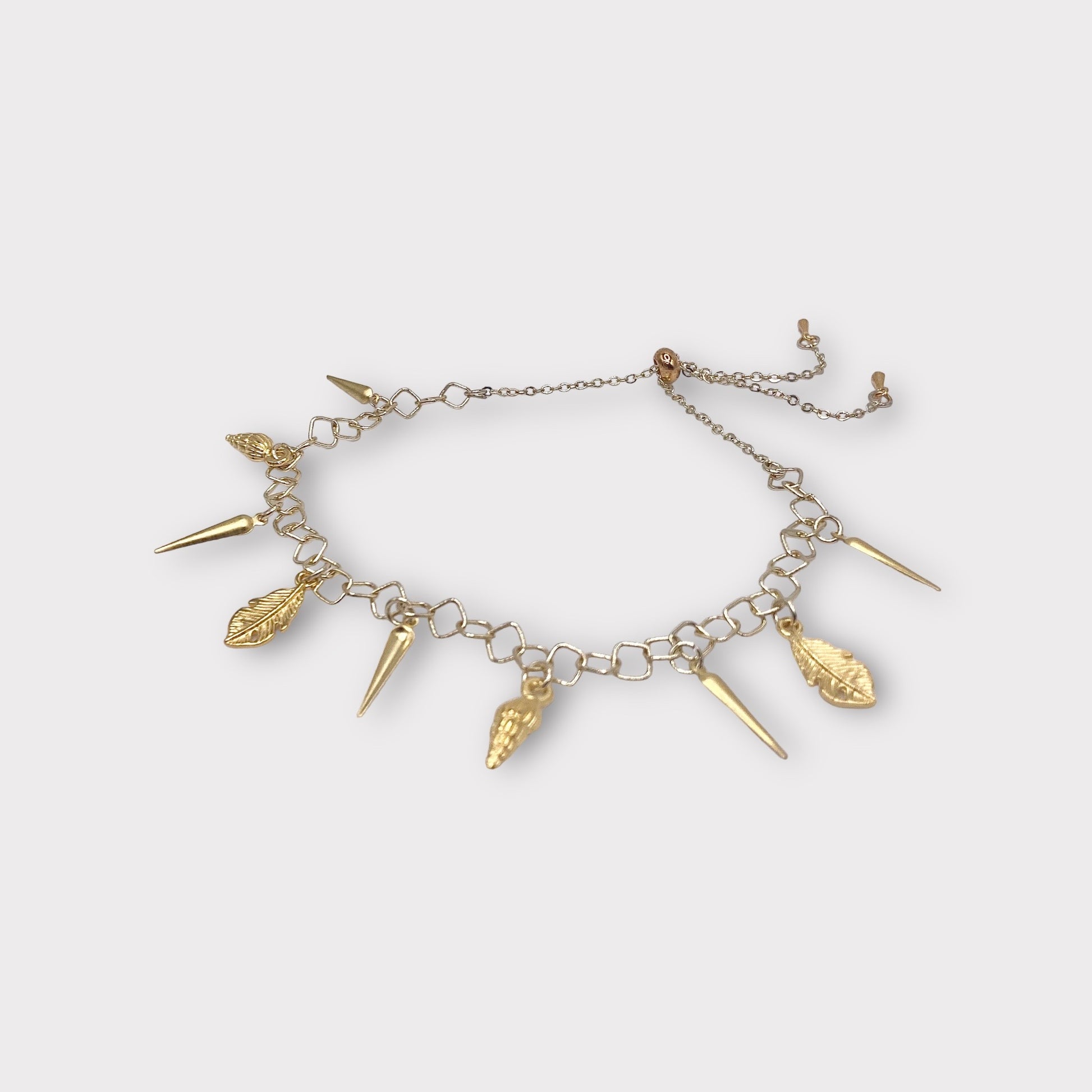 Gold-tone charm bracelet. Adjustable slide bead closure.