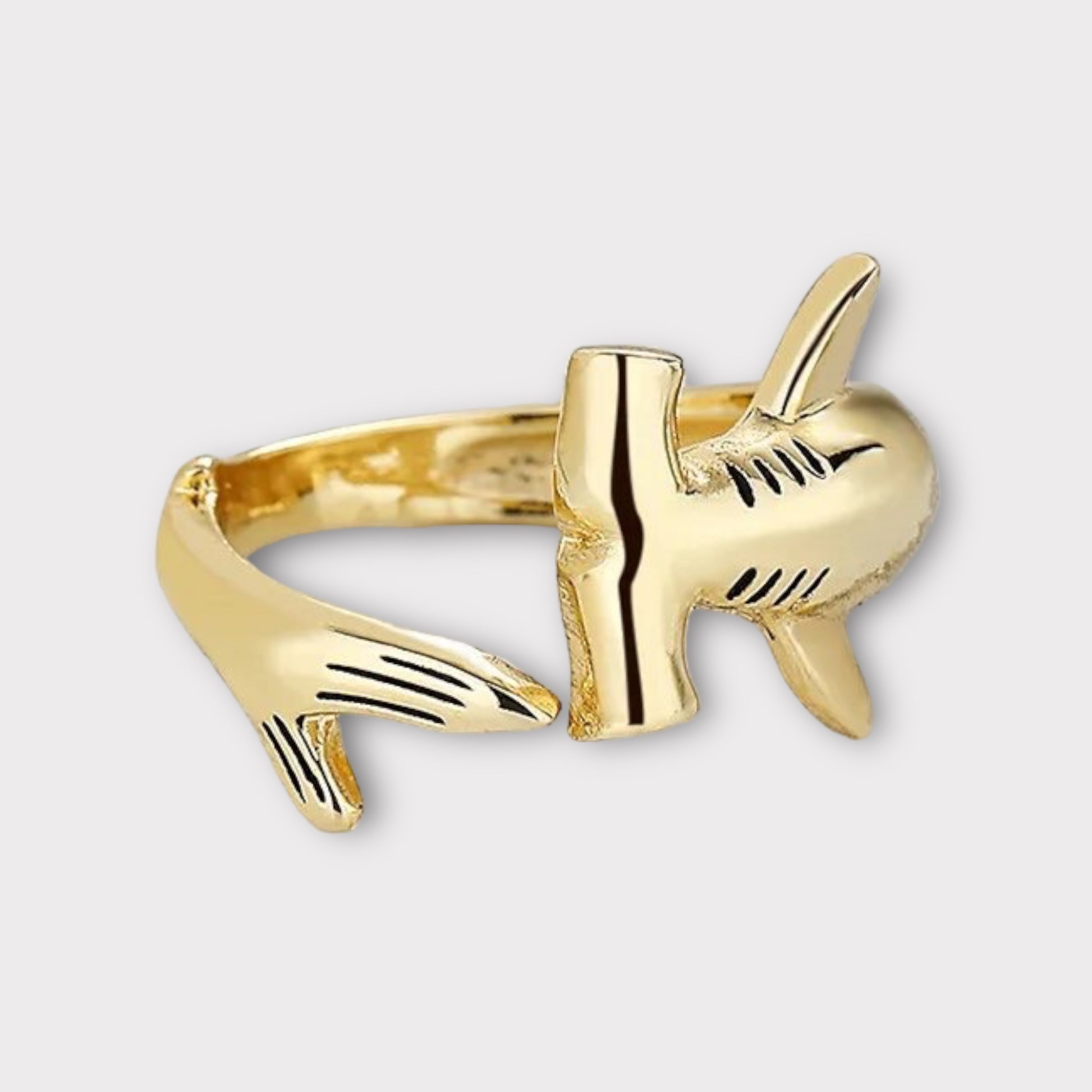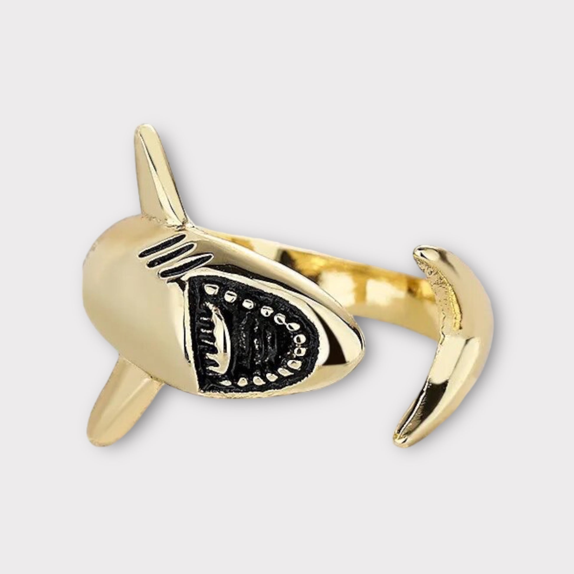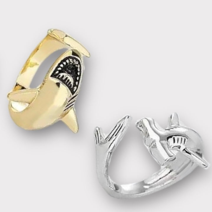 Adjustable stainless steel ring, available in Great White or Hammerhead. Both styles are also available in gold-plated steel.