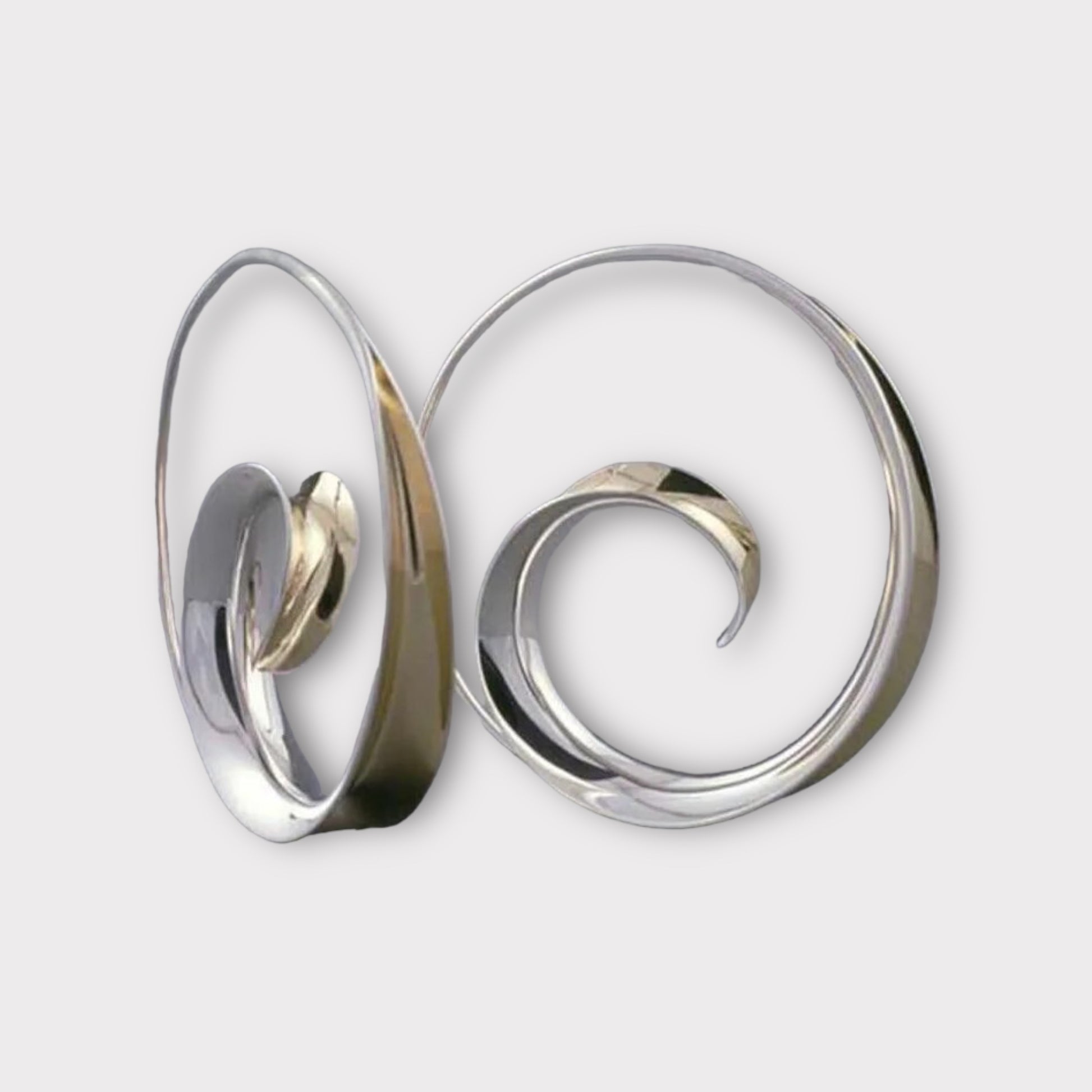 Mix it up with these large, silver-tone whirls lined with a hint of gold.