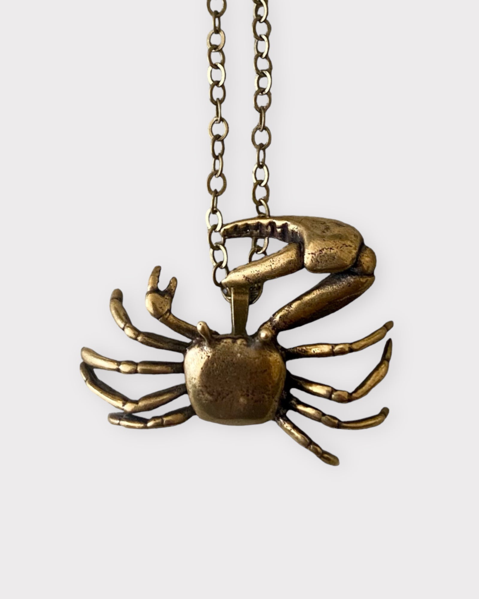 This necklace is a bold, bronze statement piece inspired by the FIDDLER CRAB, whose characteristic prominent claw is used in clashes of ritualized combat during courtship.